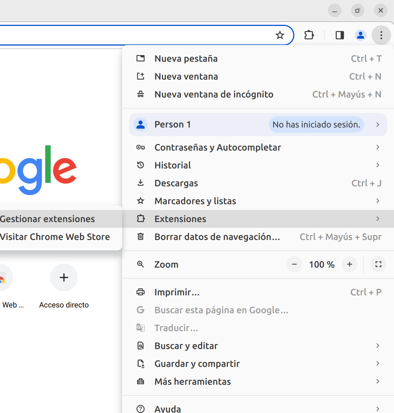 Importante: No se pueden añadir extensiones en modo incógnito o como invitado.