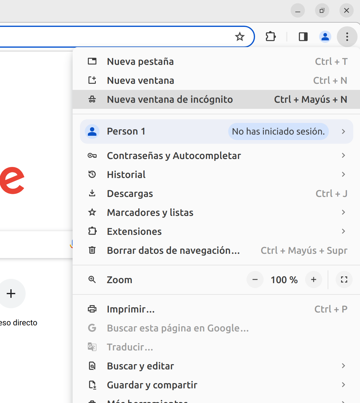 Se abrirá una nueva ventana de navegador en modo incógnito.