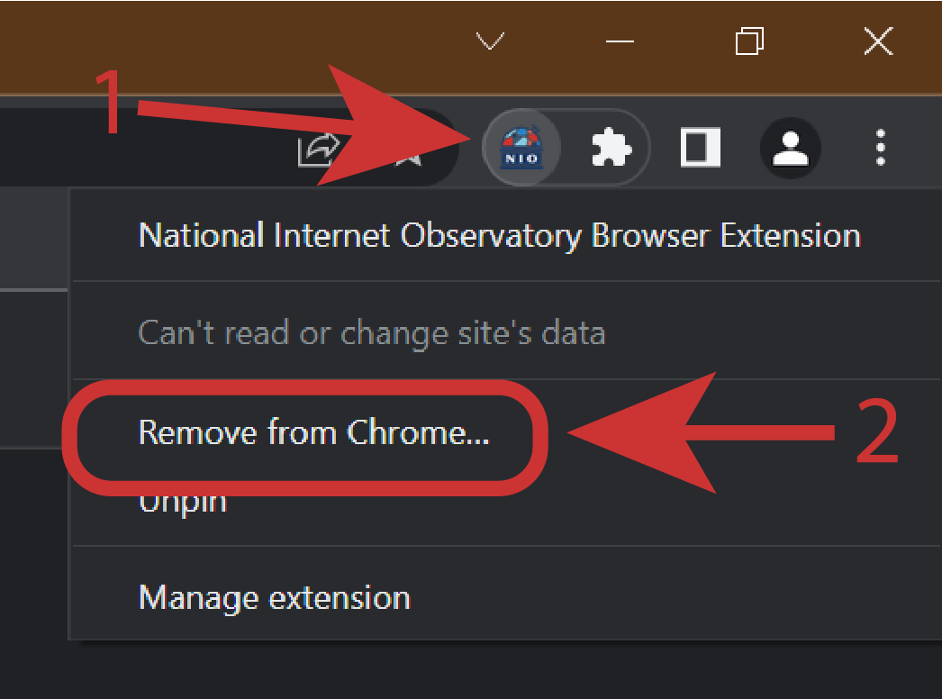 One way is to right-click the NIO icon to the right of your browser's address bar and select Remove from Chrome.