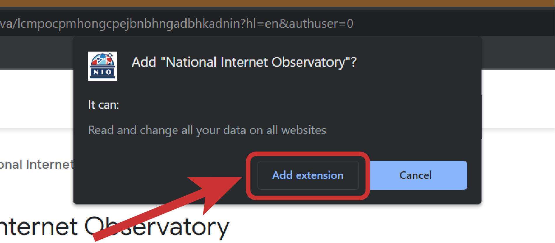 Your browser will pop-up a small dialog that asks whether you wish to add our extension to your browser. This dialog will inform you about the kinds of data that our extension has access to in your browser. To approve the installation, click the Add extension button.