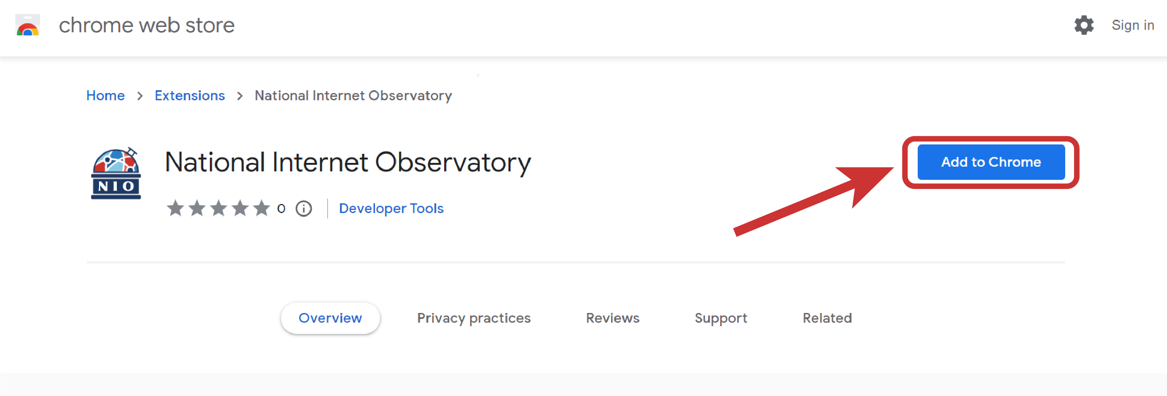 Our extension is available in the Chrome Web Store. Click the big, blue Add to Chrome button to install our extension.